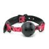 Кляп в виде полого шарика. В шарике имеются специальные отверстия для доступа кислорода. Лямки изготовлены из кожзама на удобных регулируемых застежках.