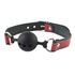 Кляп с оригинальным кожаным ремешком и лаковыми вставками черного цвета.