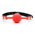 Силиконовый кляп с розовым шаром и с чёрным ремешком из эко-кожи.