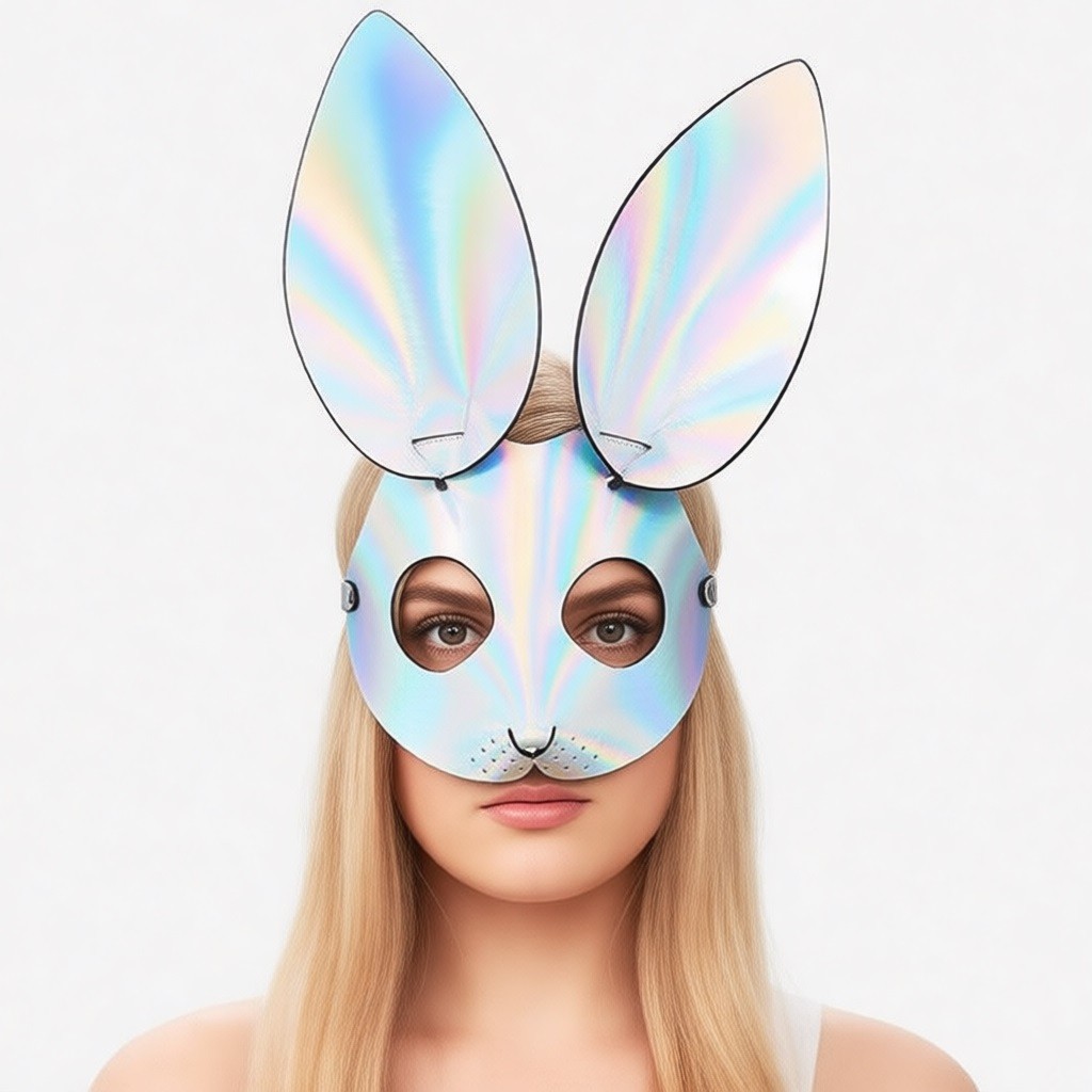 Яркая и броская, эта серебряная маска кролика придаст особый стиль вашему образу.