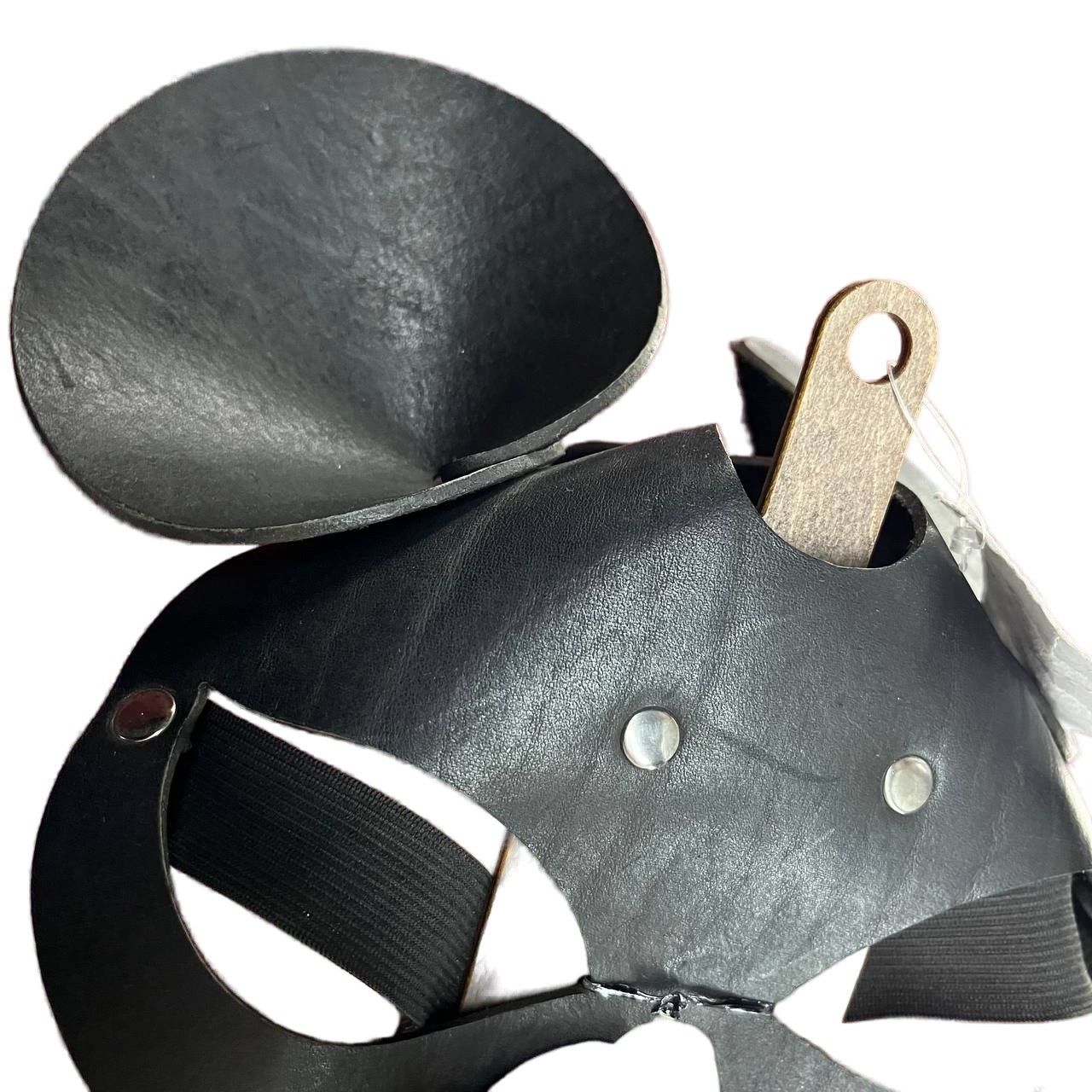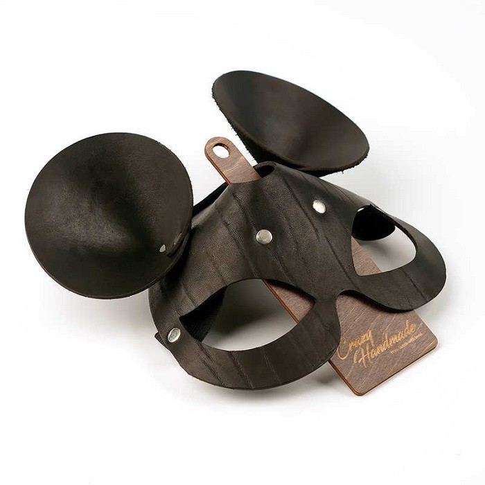 Женская маска чёрного цвета из натуральной кожи в форме Мышки с закругленными ушками. Сзади крепится на широкой резинке. Стильный девичьи наряд для откровенной эротической игры! Серебристые заклепки добавляют шарма! Удобно сидит на голове.