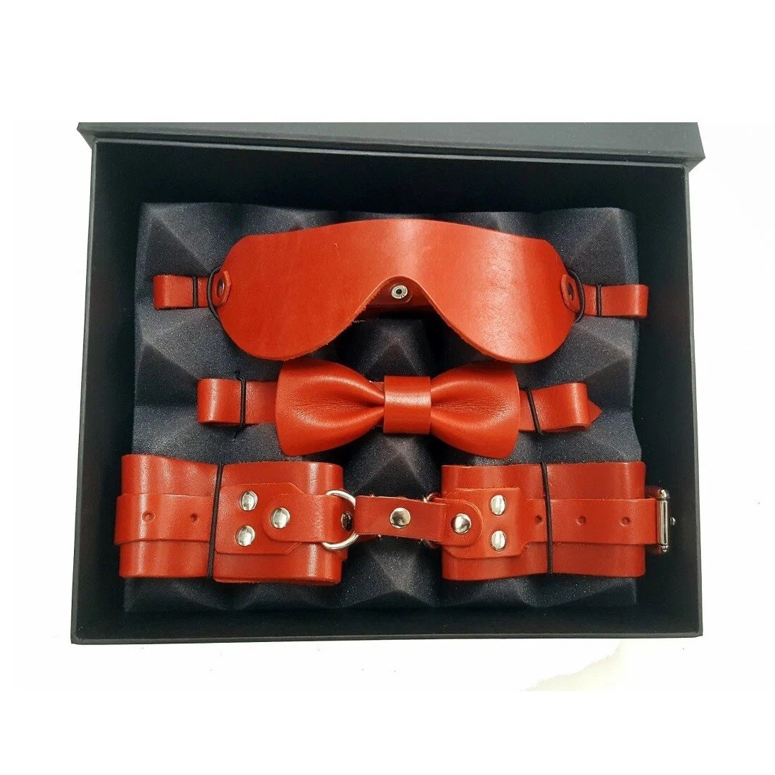 Набор создан из мягкой красной кожи для того, чтобы придать Вашим играм новые эмоции и ощущения.