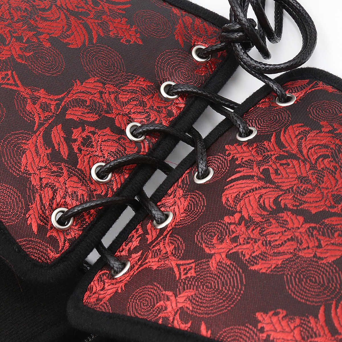 Оригинальный набор для любителей БДСМ. Пояс-корсет с фиксацией для рук в виде наручников, на застежке-липуче. Корсет застегивается на застежку-молнию сзади, спереди на шнуровке для регулировки размера. Изготовлена конструкция из материала неопрен с внутренней стороны, с внешней гладкий атлас с красивым узором. Все элементы набора выполнены в едином стиле и дополняют друг друга для яркого образа.