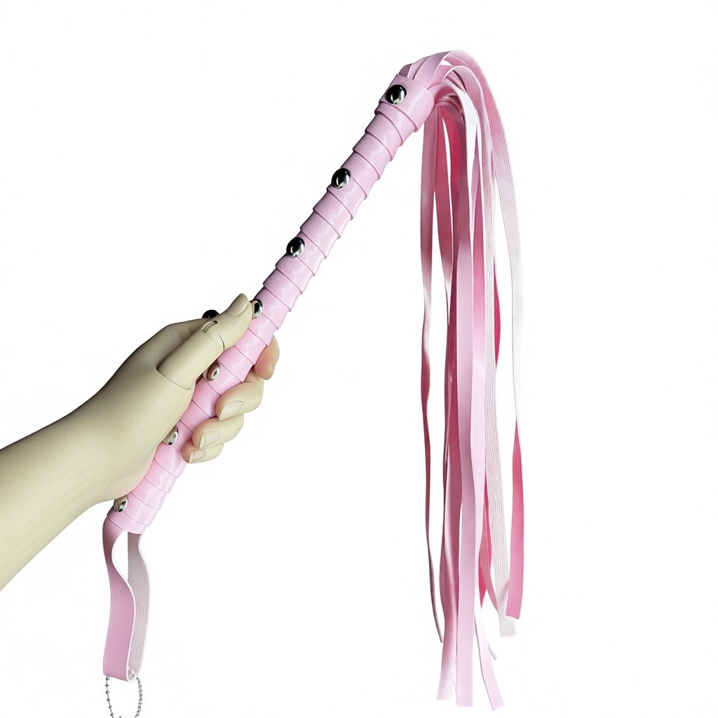 Розовая многохвостая плетка с удобной рукояткой. Отлично подойдет для любителей ролевых игр в стиле BDSM.