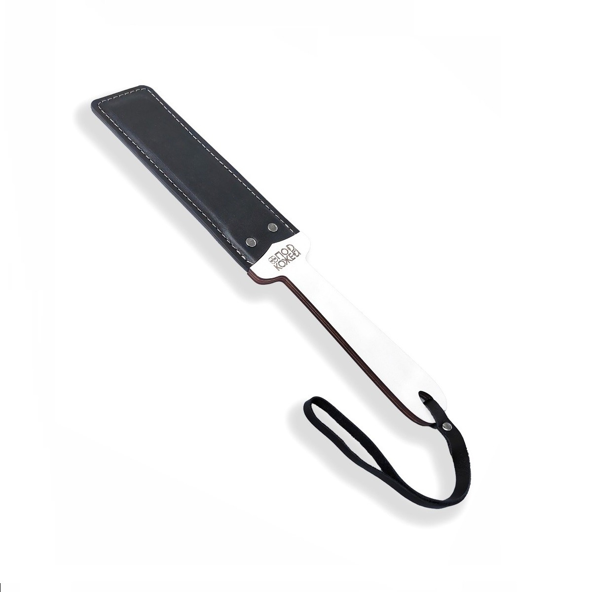 Паддл черный твердый из натуральной кожи, дерева и белого HDF-покрытия.