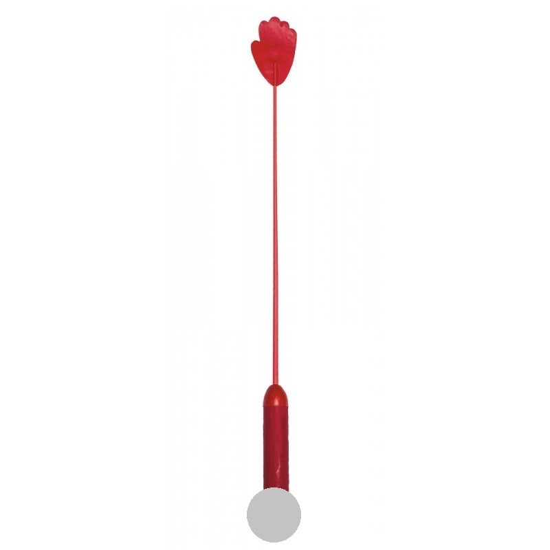 Стек фаллос классика состоит из рукояти в форме фаллоса длиной 15 см диаметром 27 мм и полимерного хлыста, покрытого натуральным латексом, длиной 45 см. На конце стека расположен шлепок.
