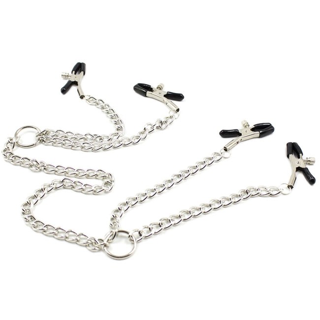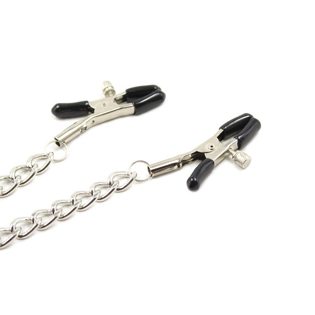 Металлические, серебристые зажимы на соски и половые губы для дополнительной стимуляции и усиления сексуального возбуждения. Кончики зажимов оснащены специальными виниловыми накладками для более деликатного сдавливания. На каждом изделии предусмотрен регулировочный винт, позволяющий контролировать силу сжатия.