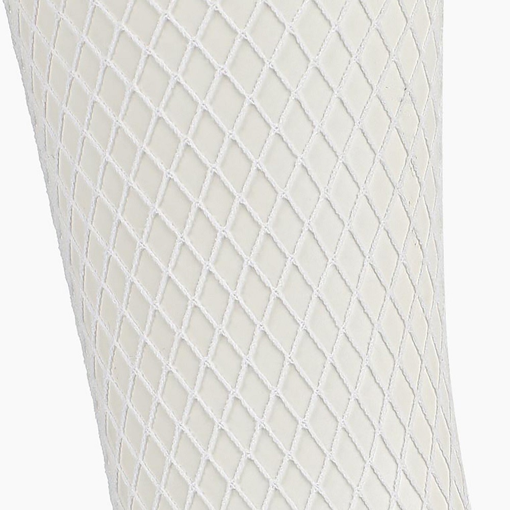 Эффектные белые чулки в мелкую сетку с ажурной резинкой на силиконе.