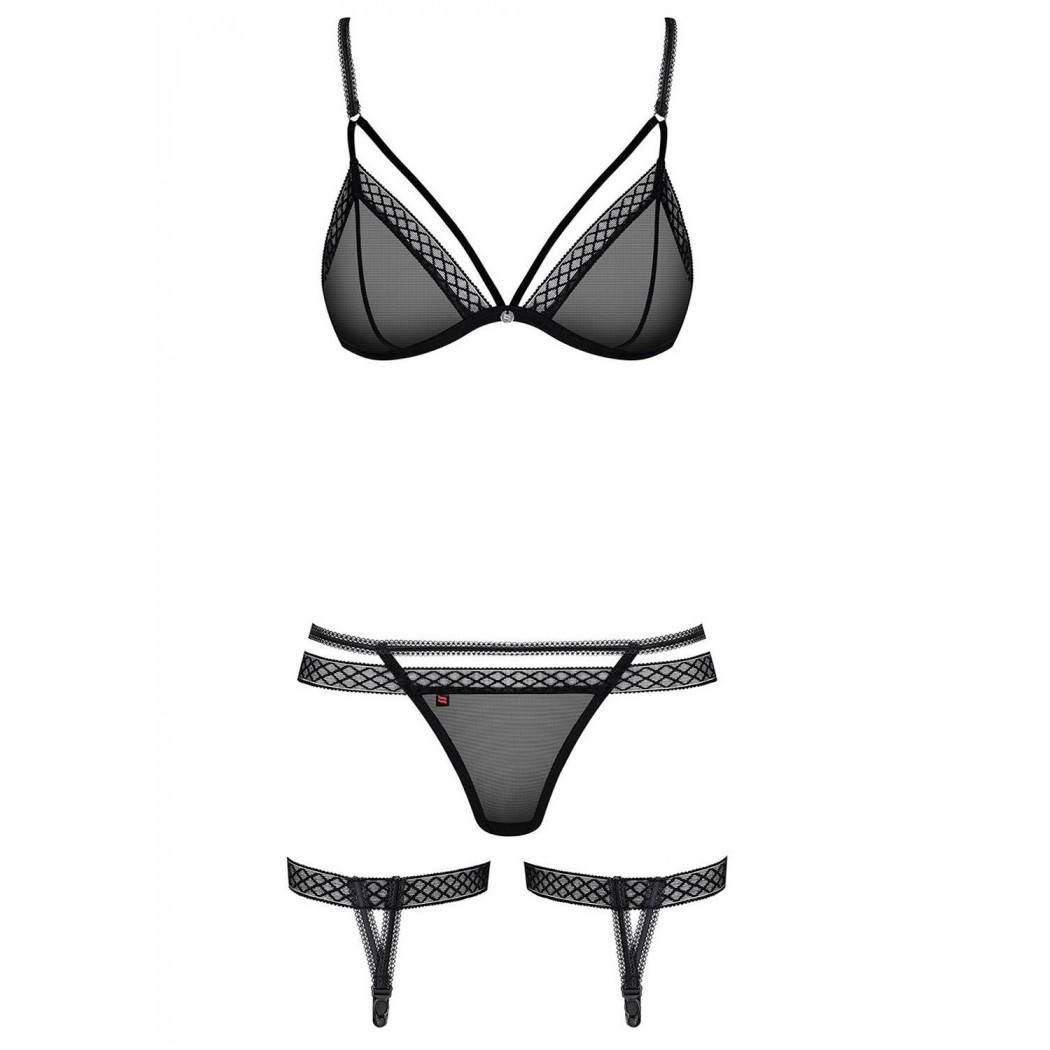 Особой пикантности комплекту добавляют элегантные подвязки для чулок на силиконе.