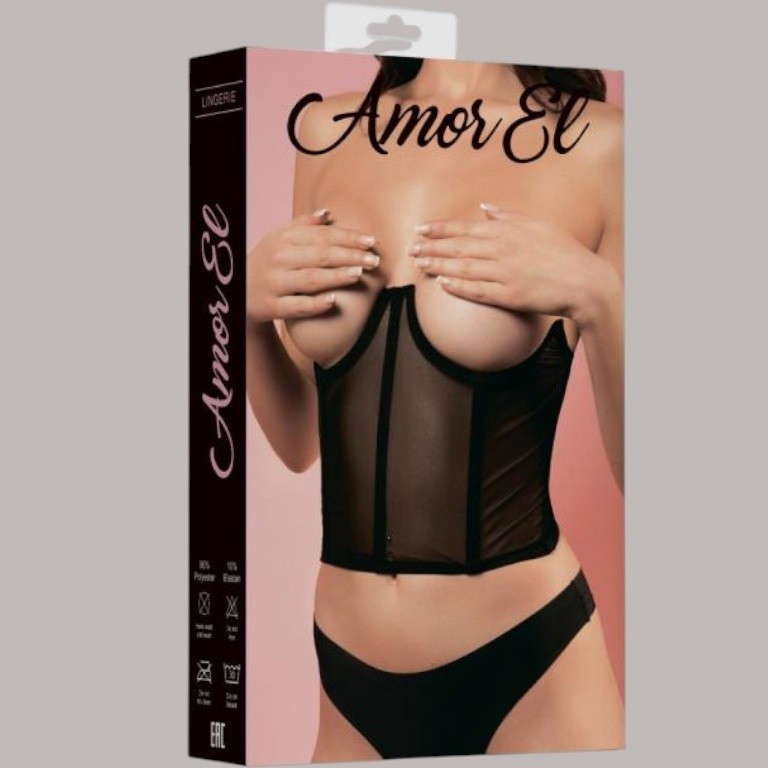 Корсет с косточками выполнен из полупрозрачной сеточки. Вставки вдоль корсета визуально делают силует стройнее. Открытая чашка у корсета дает возможность комбинировать его с повседневными топами и блузами, а также даёт возможность надеть пестисы и добавить еще больше сексуальности и игривости в кокетливый образ.