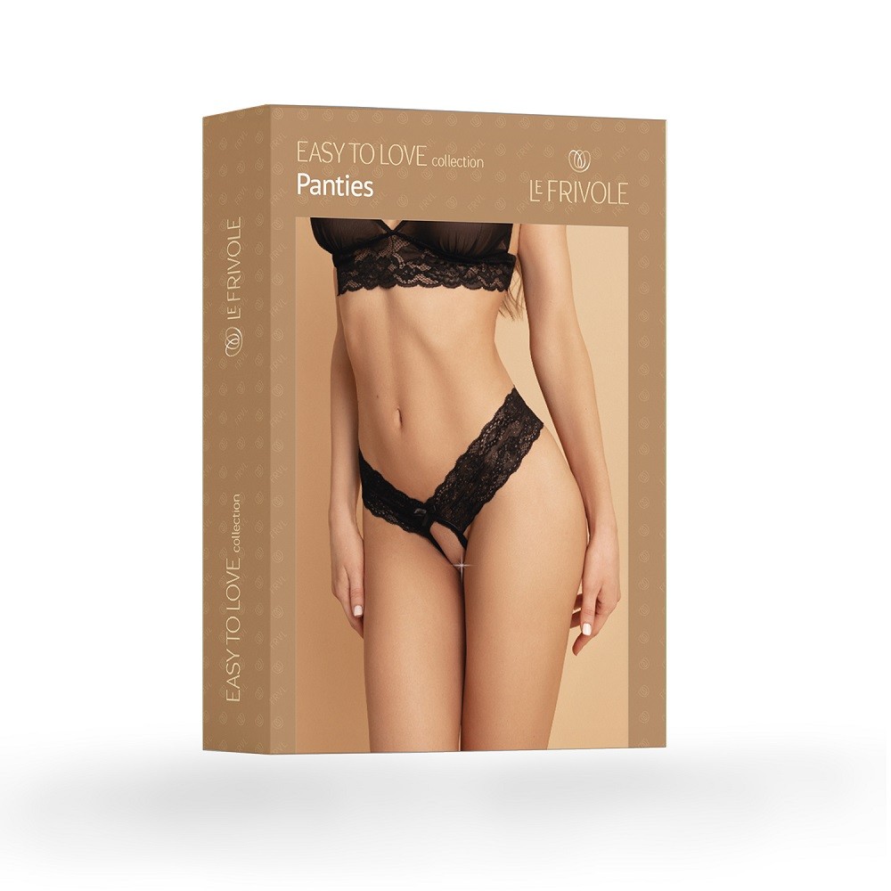 Пикантные трусики с доступом и цветочным кружевом плотно облегают фигуру и подчеркивают плавный изгиб бедер.