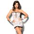 Соблазнительный бэби-долл "Aeris" из полупрозрачного кружева с цветочным рисунком и контрастной белой отделкой.