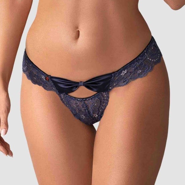 Зона бикини декорирована бантом из стрейч-атласа в тон с кружевом, задняя часть – полностью кружевная. Ластовица хлопковая.