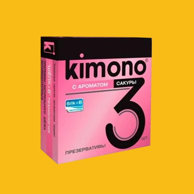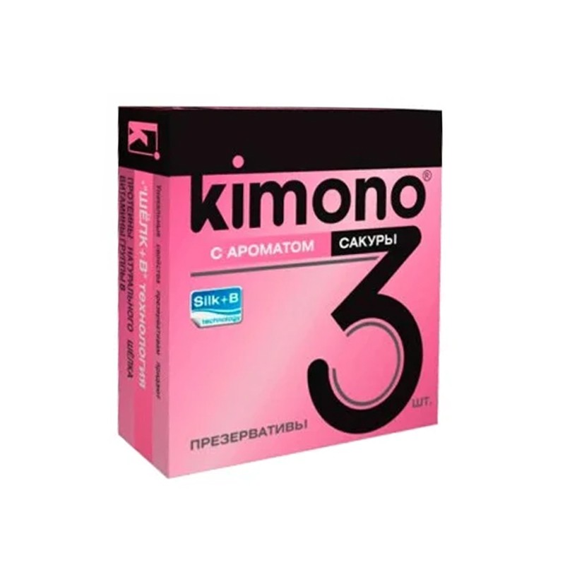 Презервативы KIMONO с ароматом сакуры, гладкие в силиконовой смазке с гипоаллергенными протеинами натурального шёлка и витаминами. С ароматом сакуры.