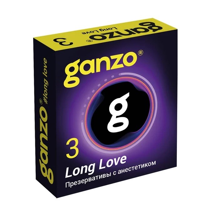 Презервативы с анестетиком Ganzo Long Love из натурального латекса цилиндрической формы с добавлением BENZOCAINE, снизят чувствительность рецепторов пениса, что позволит продлить удовольствие, не снижая желания.