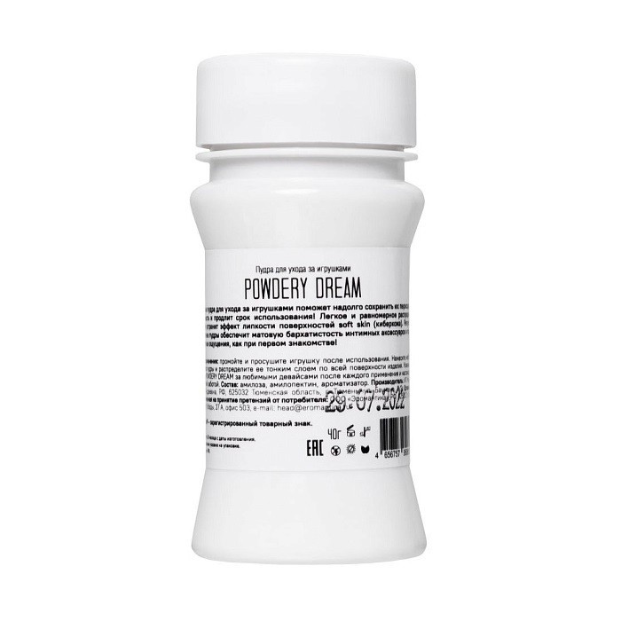 Невесомая пудра с нежным цветочно-фруктовым ароматом для ухода за игрушками поможет надолго сохранить их первозданную эластичность и продлит срок использования. Легкое и равномерное распределение средства, на сухую игрушку, устранит эффект липкости поверхностей soft skin (киберкожа). Регулярное применение пудры обеспечит матовую бархатистость интимных аксессуаров и подарит комфортные ощущения, как при первом знакомстве. Ухаживайте с помощью Powdery Dream за любимыми девайсами после каждого применения и наслаждайтесь ее приятной заботой.