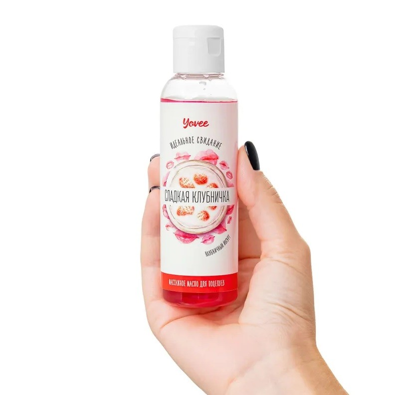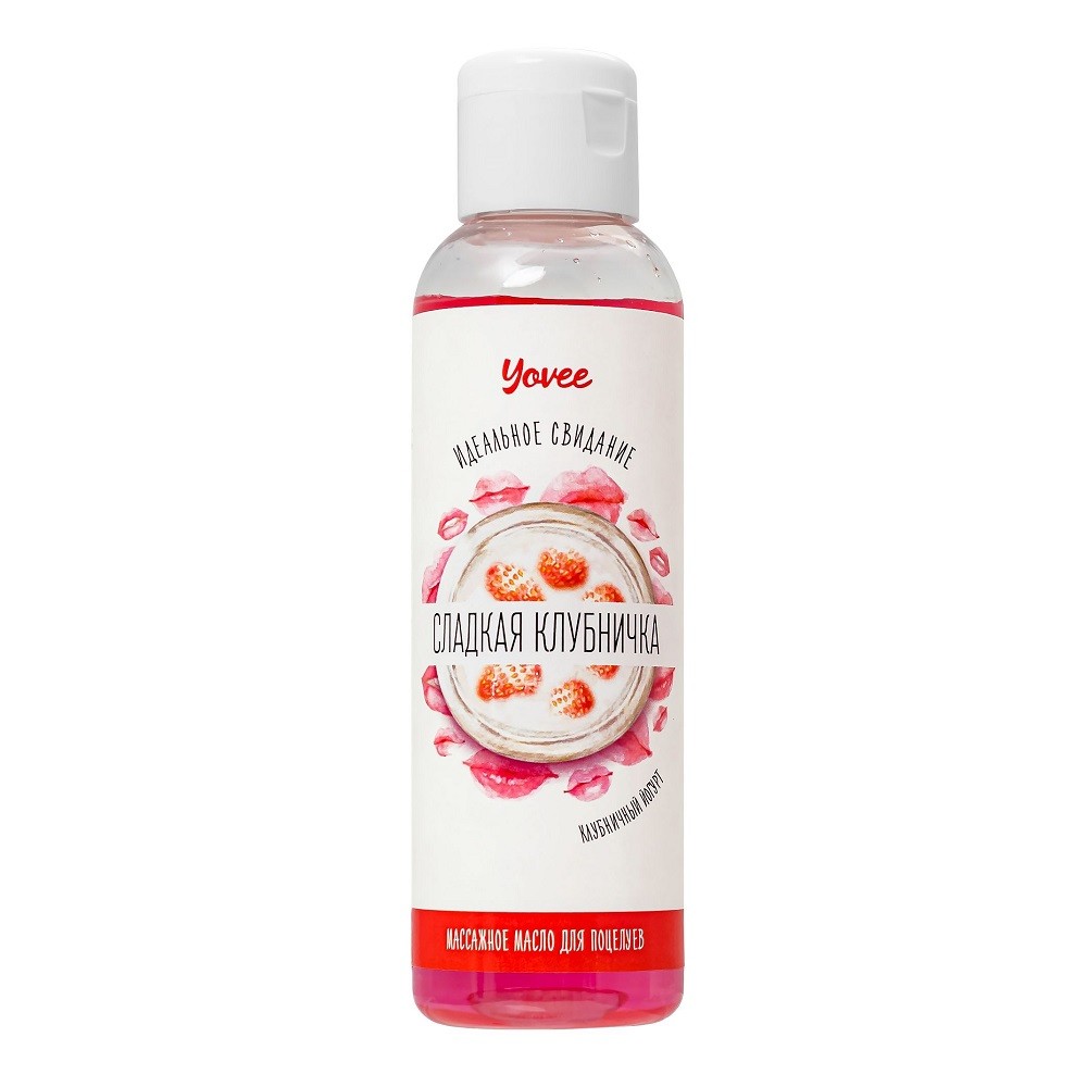 Массажное масло для поцелуев Yovee «Сладкая клубничка» со вкусом клубничного йогурта сделает свидание незабываемым. Ароматный сладкий массажный продукт дополнит парный романтический вечер или станет сочным уходовым средством для самостоятельного использования. Ощутите, как кожа наполнится влагой, станет мягкой и упругой. Яркий десертный аромат опьянит, раскрываясь на горячей коже роскошным шлейфом.