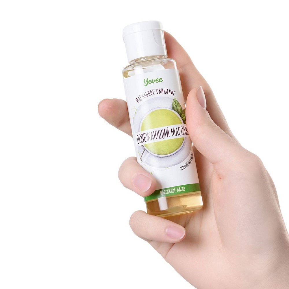 Натуральные масла в составе сделают массаж не только насыщенным и чувственным, но и полезным для вашей кожи. Отлично скользит и смывается водой. Аромат зелёного чая и мяты с лёгкостью расслабит и подготовит вас к чувственному массажу. Подготовьтесь к свиданию: После приёма расслабляющей ванны побалуйте себя ароматным массажем. Налейте масло в ладони и лёгкими массажными движениями массируйте своё тело. Освежающий аромат и натуральные масла в составе сделают вашу кожу приятной и мягкой. Применение: Налейте масло в ладони и немного разотрите в руках. Мягкими и плавными движениями массируйте тело. Не рекомендуется в качестве персонального лубриканта.