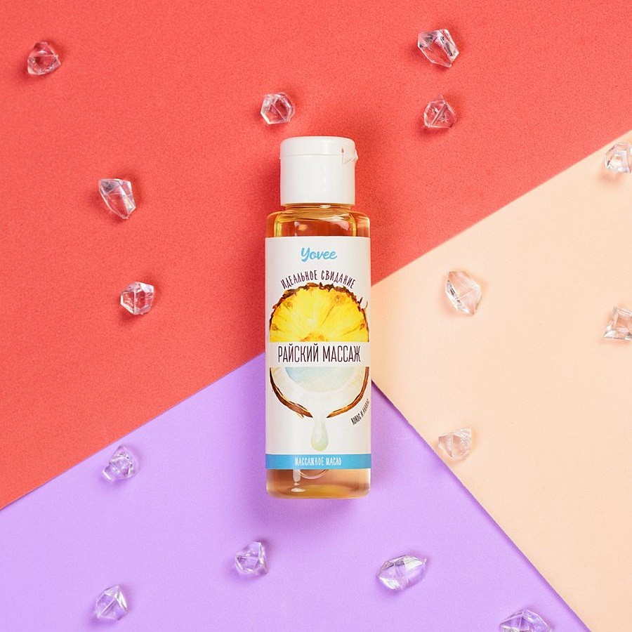 Натуральные масла в составе сделают массаж не только насыщенным и чувственным, но и полезным для вашей кожи. Отлично скользит и смывается водой. Пикантный и тропический аромат кокоса и ананаса с лёгкостью расслабит и подготовит вас к чувственному массажу. Идея для свидания: Подготовьте фрукты и коктейли и наденьте летний наряд. Предложите партнёру райский массаж. Сделайте массаж своим обнажённым телом — так он станет ещё более интимным и чувственным.