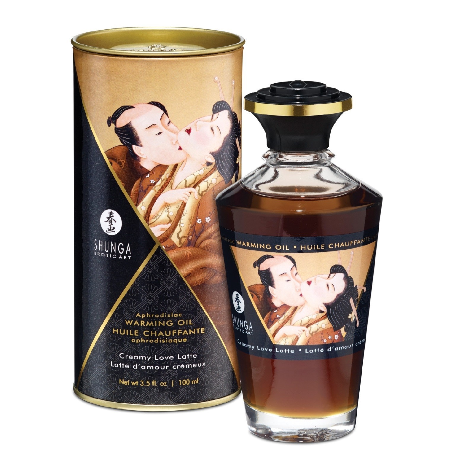 Масло с афродизиаками со вкусом «Сливочный любовный латте» является разогревающим масло для тела с натуральными вкусовыми добавками.