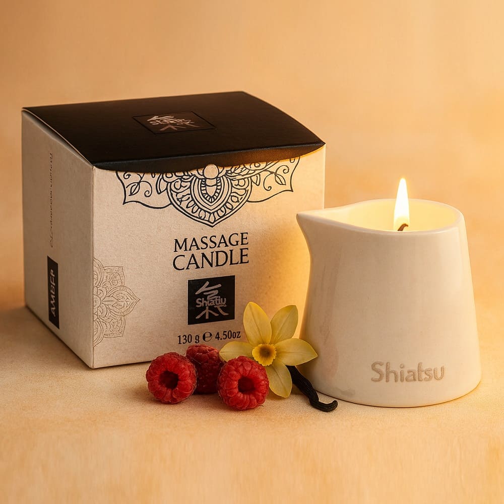 Массажная свеча Shiatsu со сладким ароматом малины и ванили при горении превращается в шелковистый воск, который можно наносить на кожу.