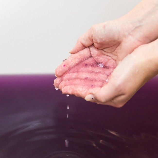 Благодаря данному продукту, ванная комната трансформируется в райский уголок. Вода в ванне меняет свой цвет на розовый и превращается в роскошное зернистое желе, ароматизируя воздух. Густоту желе можно регулировать добавлением порошка №1 (увеличение плотности) или №2 (уменьшение плотности).