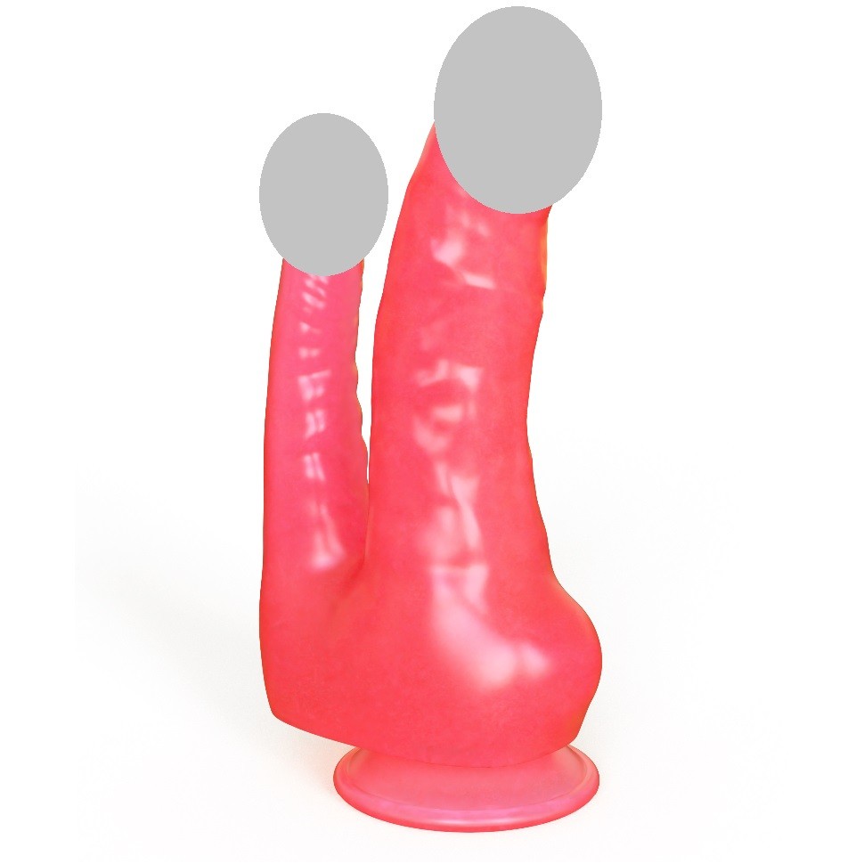 Изделие выполнено в виде двух совмещенных фаллосов различного размера, главной особенностью которых является их реалистичность. Фаллоимитатор можно крепить к любой плоской поверхности, используя присоску, расположенную в его основании.