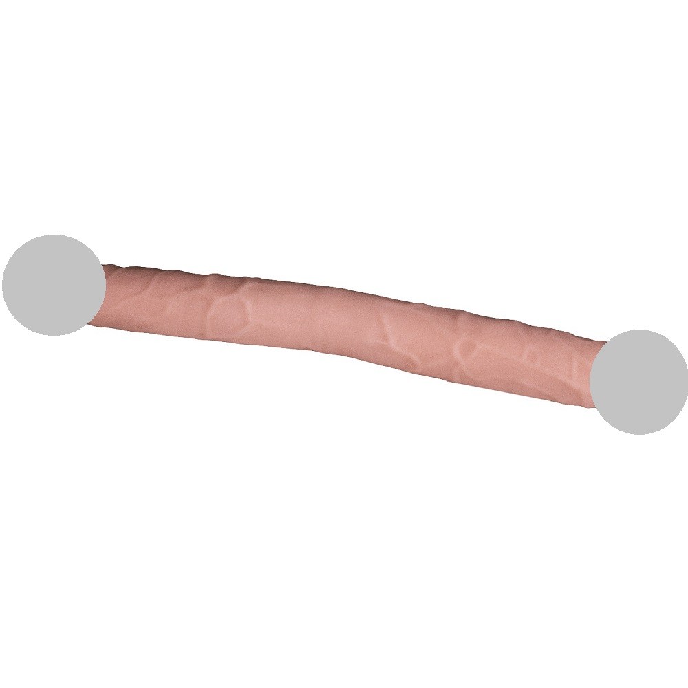 Двухголовый фаллоимитатор телесного цвета. Рельефный, невероятно гибкий, с выраженными головками. На упругом полужестком каркасе находится слой бархатистой «кожи» из полимера последнего поколения. Абсолютное ощущение реальности и комфорта.