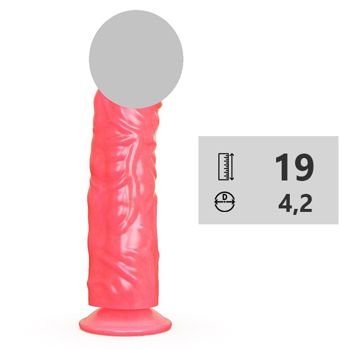 Интим-игрушка выполнена в форме полового члена, с сильно выпуклыми венами по всей длине ствола и ярко-прорисованной головкой. Без мошонки. Цвет красно-розовый.