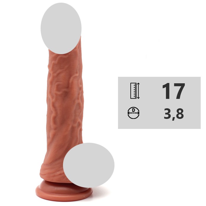 Имитация имеет мягкую округлую головку, гибкое покрытое венками тело, упругую естественной формы мошонку. Присоска в основании позволяет надежно закрепить игрушку на любой гладкой поверхности или использовать в качестве страпона.