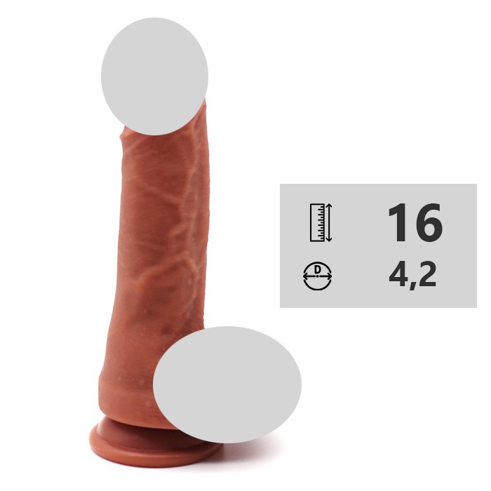 Игрушка столь же эффектно выглядит, как и фаллоимитаторы из кибер-кожи, но при этом менее притязательна к режиму хранения и очистке. Имеет двухслойную конструкцию – плотный, упругий стержень покрыт слоем нежного, мягкого как человеческая кожа материала. Это создает максимально реалистичный эффект. Дизайн также достоверно копирует облик мужского полового члена - ствол исчерчен венками, жилками и бугорками, имитирующими естественную текстуру возбужденного пениса. Внизу имеется фактурная мошонка с двумя четко обозначенными яичками, под которой имеется присоска для крепления на гладких поверхностях.