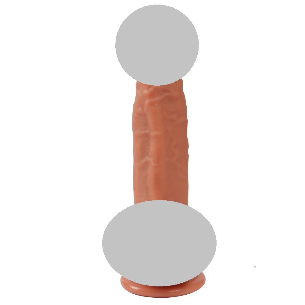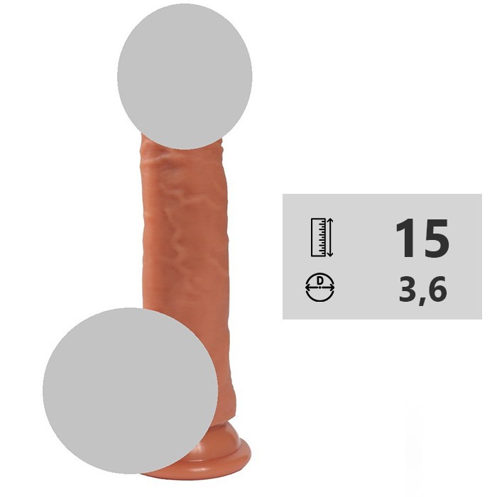 Имитация имеет мягкую слегка конусовидную головку, гибкое покрытое венками тело, упругую естественной формы мошонку. Цвет светло-коричневый, головка и венки не окрашены. Присоска в основании позволяет надежно закрепить игрушку на любой гладкой поверхности или использовать в качестве страпона.