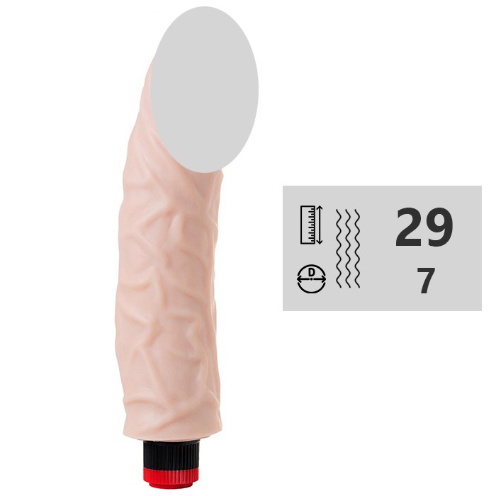 Огромный реалистичный вибромассажёр телесного цвета. Имеет форму члена с ярко выраженной розовой головкой. Необычайно приятный, упругий, рельефный, выполненный из ТПЕ, не имеет швов.