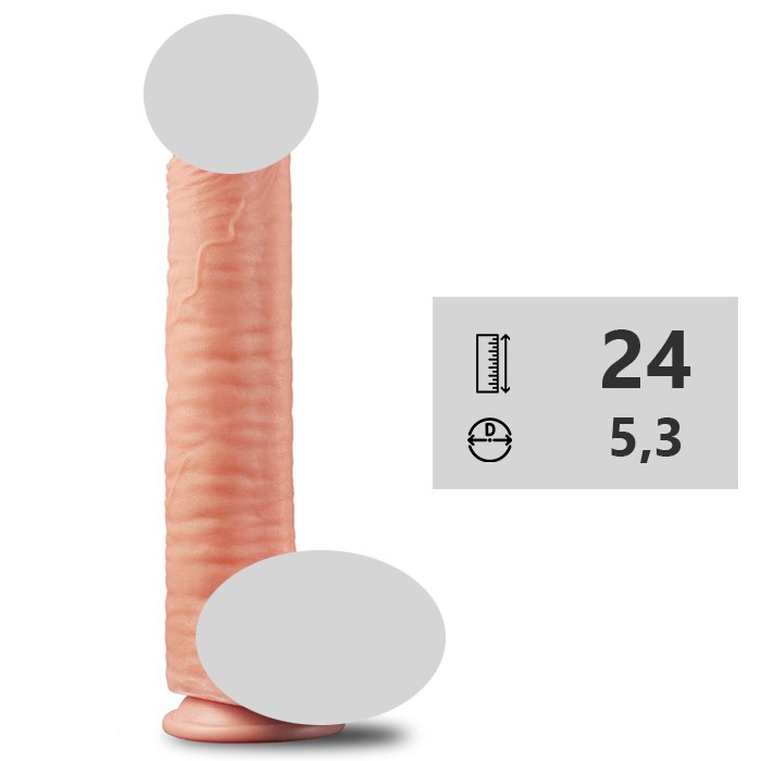 Большой фаллоимитатор для любителей фистинга. Уникальный материал для фаллоимитатора Dual Silcone, благодаря которому этот фаллоимитатор выглядит очень реалистично. Фаллоимитатор с присоской и мошонкой. Цвет телесный, головка розовая.
