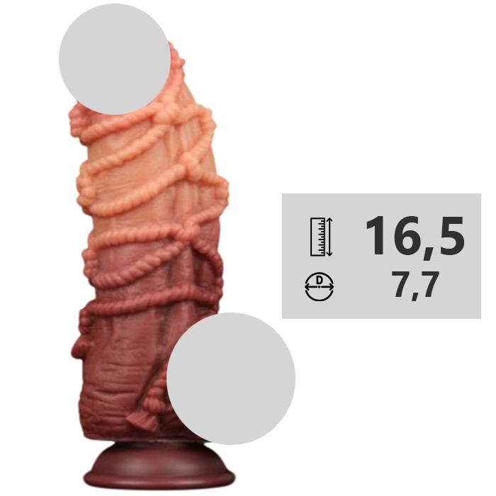 Супер рельефный ствол с четко прорисованными и ярко выраженными складочками, набухшими венками и рельефом из плетеных веревок обеспечат самую интенсивную стимуляцию.