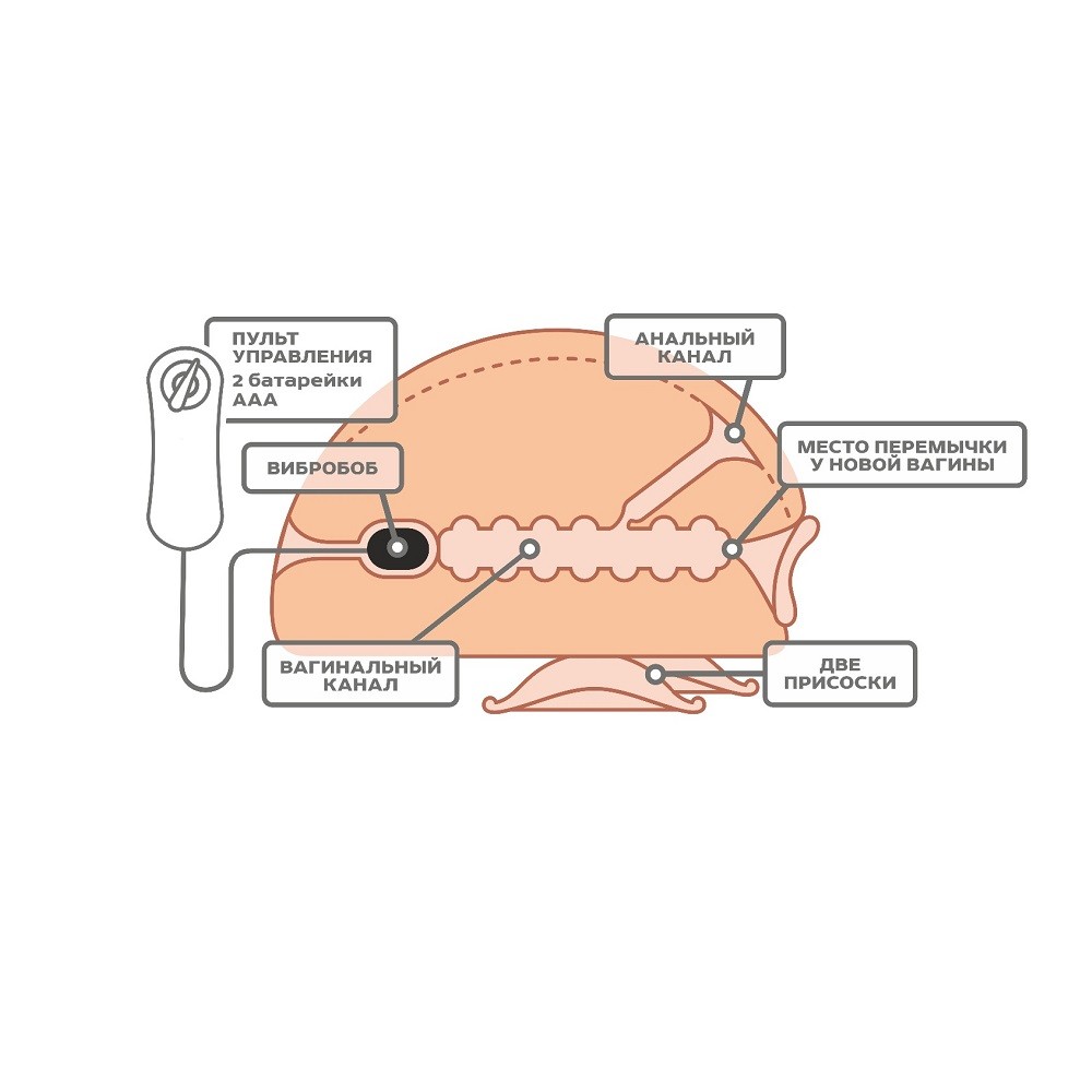 Искусственная вагина реалистичного цвета и формы. Изделие точно повторяет женские половые органы и анальное отверстие. Для более чувственного секса снабжена вибрацией и выносным пультом для регулировки мощности.
