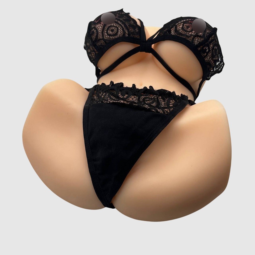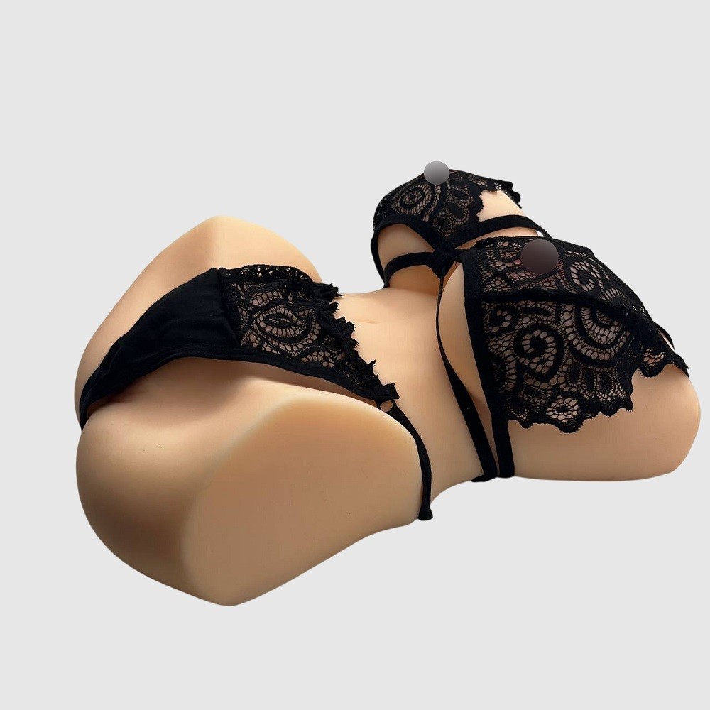 Вагинальный канал сквозной. Мастурбатор не в натуральный размер, миниатюрная версия торса, имеет одну позу для использования на горизонтальной поверхности. Белье в комплект не входит. Белье на фото очень велико для данного мастурбатора.