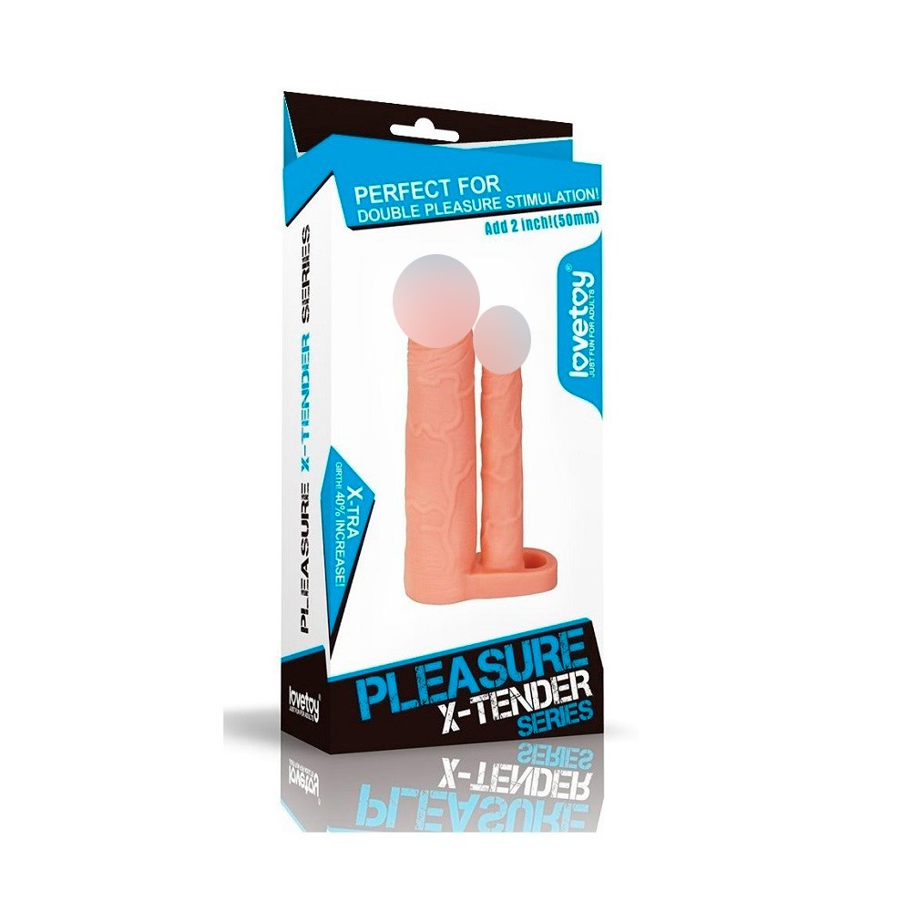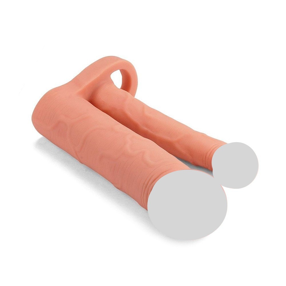 Насадка для двойного проникновения – прекрасный способ расшевелить приевшийся секс и добавить азарта вам и вашей партнерше. Игрушка не только имитирует двойное проникновение, но и выполняет еще несколько функций: увеличивает пенис в длину на 5 см и добавляет 40% к обхвату, а также задерживает семяизвержение благодаря кольцу на мошонку.