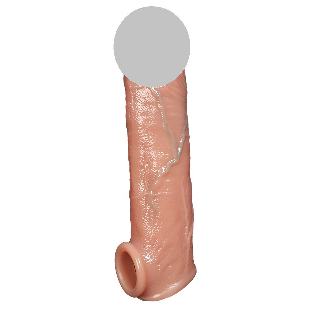Открытая головка + фиксирующий хомут — надёжно удерживает насадку на месте, дополнительно стимулирует эрогенные зоны и мягко сдавливает мошонку для усиления притока крови.