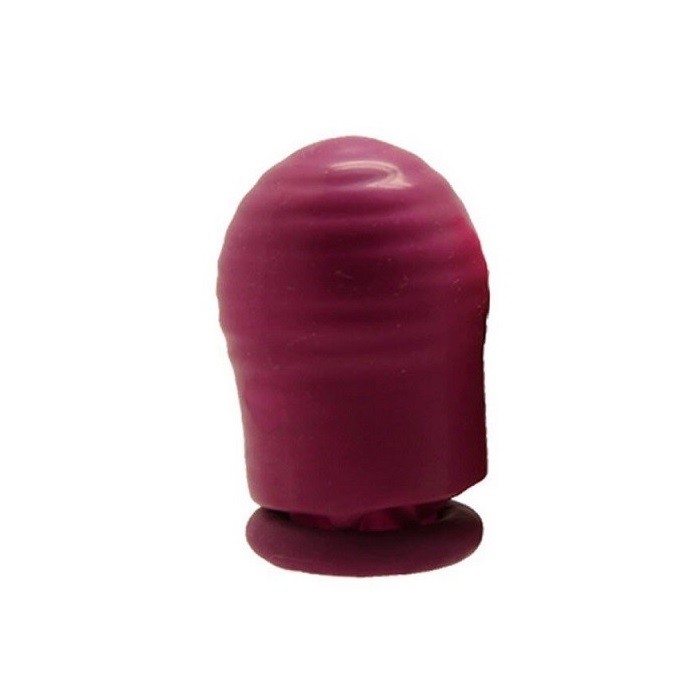 Фалоудлинитель фиолетового цвета. Имеет ребристую поверхность. Вставка из спандекса удлиняет член на 5 см. Насадка не реалистичная, дизайнерская.