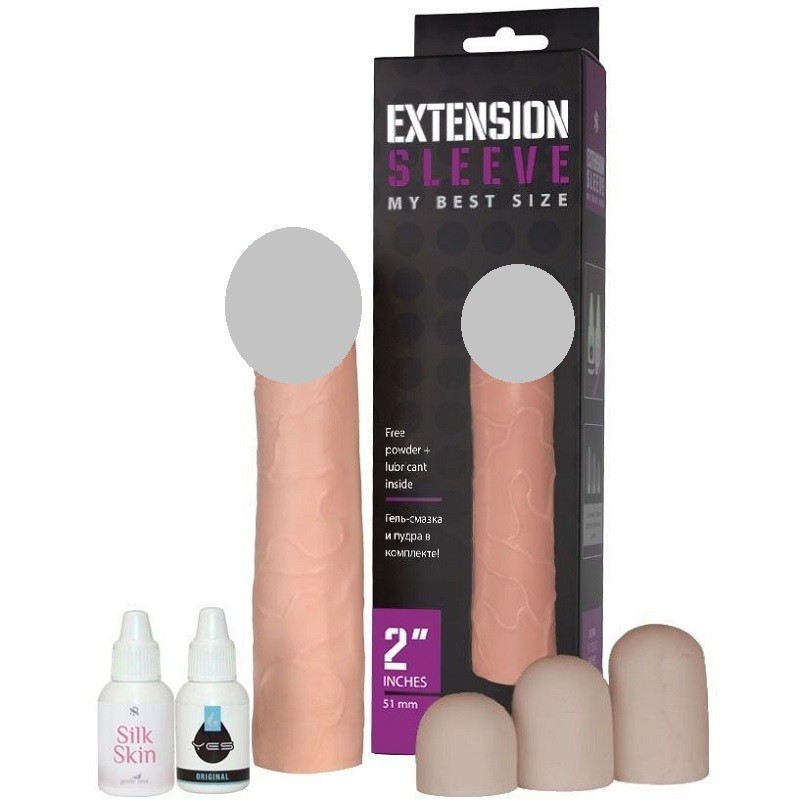 Наличие в комплекте трёх вставок различного размера предоставляет возможность увеличить пенис на необходимую длину. Насадка выполнена из очень реалистичного, мягкого материала телесного цвета, что даёт возможность оставить незаметным корректировку пениса для вашей партнёрши. Головка не окрашена.