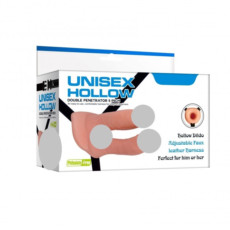 Страпон Unisex Hollow для двойного проникновения. Выполнен из высококачественного гипоаллергенного материала. Изделие является полым, поэтому может использоваться как мужчинами, так и женщинами.