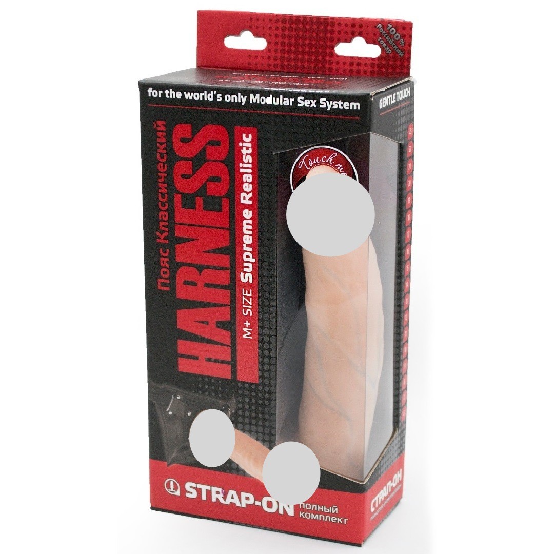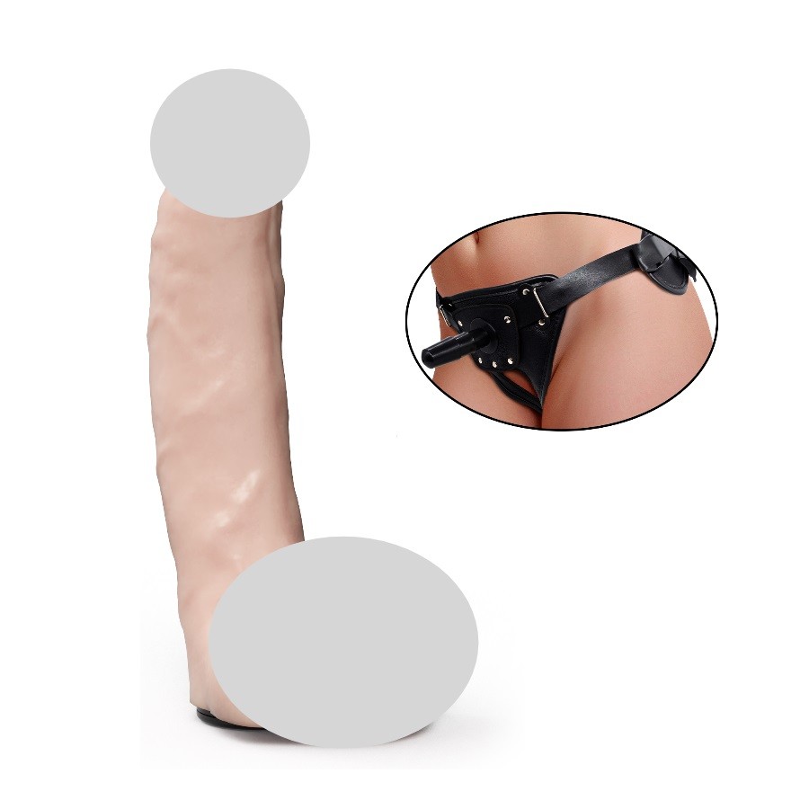 Страпон, стандартно состоящий из удобного пояса с креплением, на которое прочно садится крупный фаллоимитатор с мошонкой.