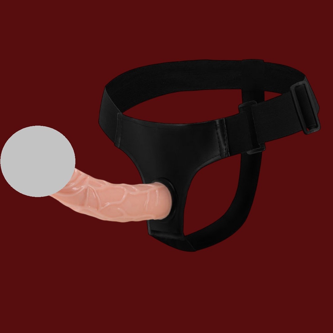 Страпон телесного цвета, имеет форму члена с ярко выраженной головкой и рельефной поверхностью, для лучшей стимуляции.