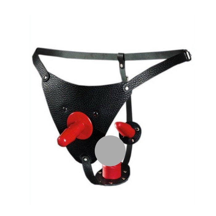 Фаллоимитатор и пробку при желании можно легко снять с ремешка, что позволяет использовать страпон в различных вариациях. Аксессуар выполнен из качественной натуральной кожи чёрного цвета.