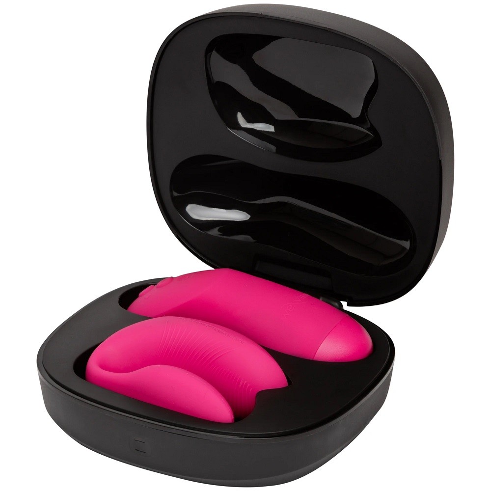Зарядный кейс. Игрушка и пульт ДУ заряжаются с помощью магнитных штекеров, расположенных в специальной кейсе для зарядки и хранения. При желании вы можете использовать зарядный кабель от другой игрушки We-Vibe для зарядки We-Vibe Chorus Pro без кейса.