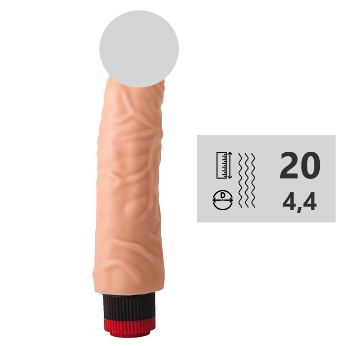 Вибромассажер имеет реалистичную форму. Благодаря хорошо прорисованной головке и выпуклым венам по всей длине ствола, он выглядит как настоящий эрегированный пенис. Выраженная ребристая форма, подразумевает интенсивную стимуляцию. Головка не окрашена.