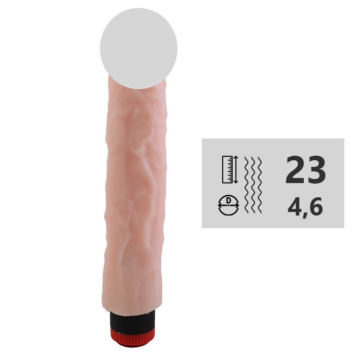 Изделие имитирует настоящий половой член мужчины с розового оттенка головкой. Вибратор может плавно регулироваться в своем основании при помощи специального колёсика.