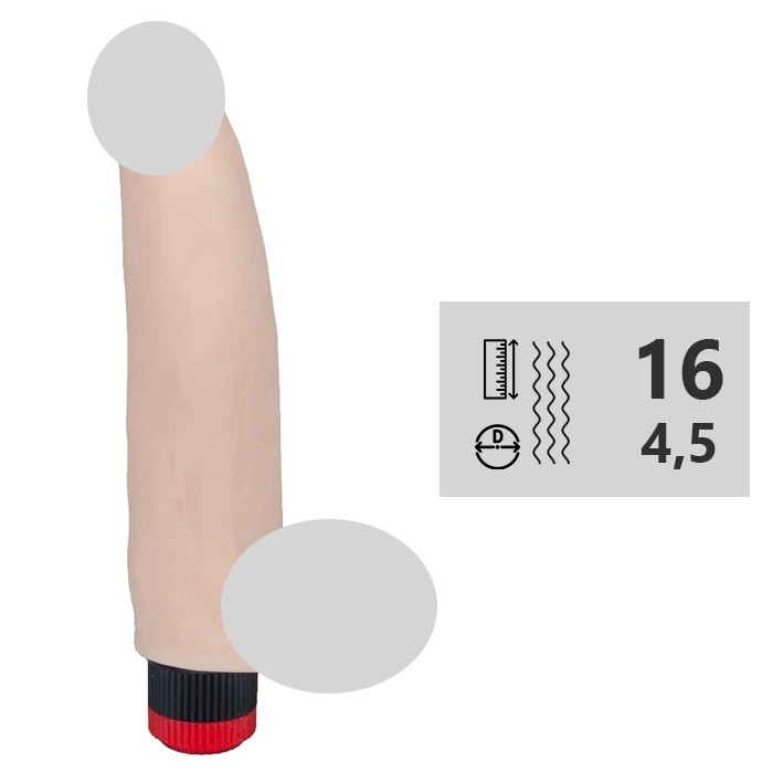 Изделие имитирует настоящий половой член мужчины. Головка окрашена в розовый оттенок. Вибрация плавно регулируется в своем основании при помощи специального колёсика.