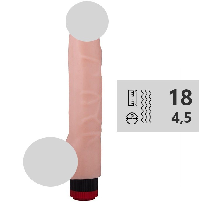 Изделие имитирует настоящий половой член мужчины. Вибратор может плавно регулироваться в своем основании при помощи специального колёсика.